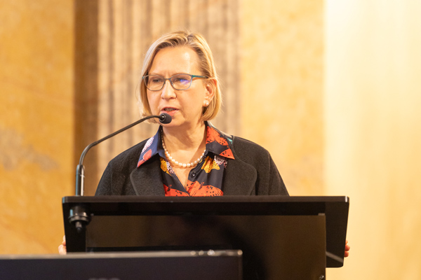 Claudia Rapp tauchte schließlich tief ins Thema Eurasien und die fünf Themenfelder des Clusters, an dem mehr als 30 Forschende beteiligt sind, ein. Sie lauten: Imperiale Dynamiken und deren Grenzen, Ökologische und wirtschaftliche Transformation, Vielfalt von Sprachen und Kulturen, Mobilität und Migration, Konstruktionen von Identitäten und Differenzen. „Die Forschungen müssen auf einer fundierten Grundlage stehen“, betonte Rapp, Österreich sei hier in einer guten Position. „Wir wollen neue Infrastrukturen in der Zusammenarbeit schaffen.“ Die nächste Generation von Forschenden soll im Rahmen des Clusters geschult werden im Umgang mit dem schriftlichen kulturellen Erben und den Ausgangssprachen.