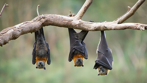 Drei Personen stehen vor einer Aithyra-Logowand. ÖAW/Niko Havranek